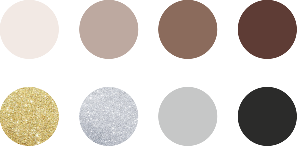 Используйте любые оттенки черного, серого, шоколадного, бежевого, золотого и серебряного, а также сочетания этих цветов.